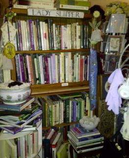 IN OUR HARWINTON SHOP, We have over 20,000 books in our collection, published from 1880's to 2007, mostly hardcover, first editions, many signed. Specialities include: cooking, decorating, biographies, history, occult, gardening, art, crafts, poetry, children's series books, art, regional interest and more. Also we have an online inventory for you to browse, book search, and world-wide shipping. . |