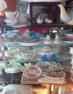 We have a beautiful selection of vintage and antique teapots, special bone china teacups, dessert plates, cake stands, silver flatware_ everything you will need for a special tea party. Browse our selection of vintage hats and purses from 1800's to 1980, make a fashion statement, or decorate a boudoir. Sparkling rhinestone jewelry to tempt you. Vintage gloves in all colors and lengths. Always a basket full of dainty hankies. Step back into a gentler time , find the perfect gift for yourself or some else. |